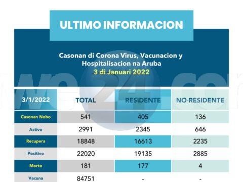 ORANJESTAD- 03 januari 2022. Segun resumen di awe 673 persona a recupera y un total di 541 caso nobo di COVID-19 a keda registra di…