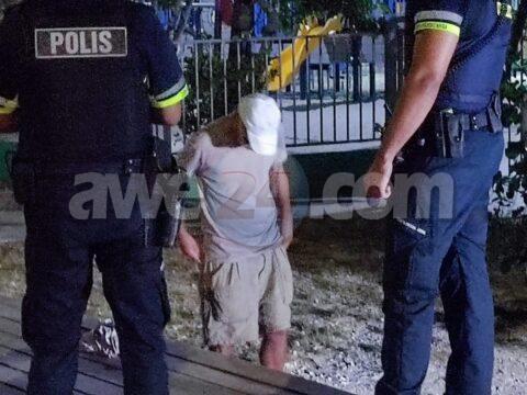 Diadomingo madruga polis di e brigada K9 a nota un homber burachi canando banda di Nikky Beach y a acerke. E homber a bisa oficial…