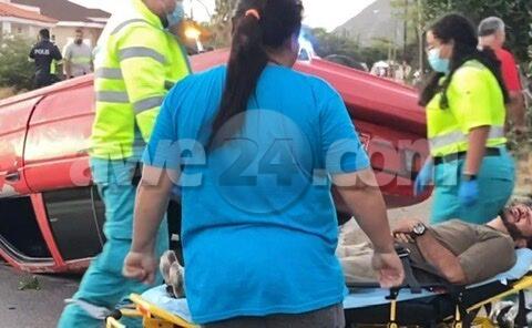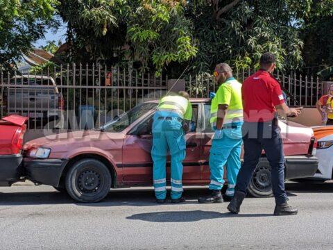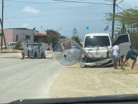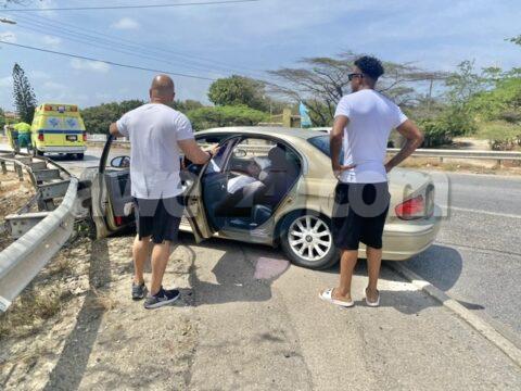 Accidente cu hende herida y pega den auto na e cruzada pabao di Urataka Center
