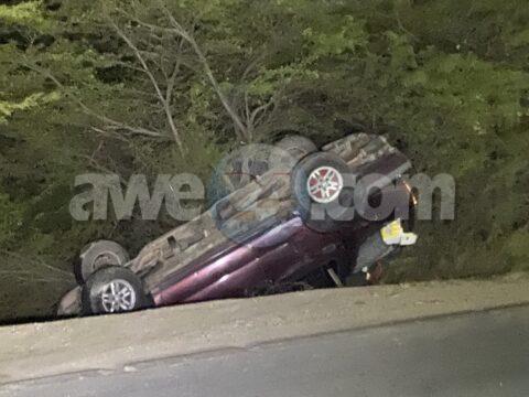 Dama chauffeur pa motibo di celular a perde control, baha caminda bay pasa over di greppel na Tanki Flip