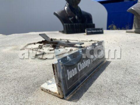 Vandalismo riba monumento di Himno y Bandera dilanti di Unoca den Stadionweg, a bay cu e busto di Padu!