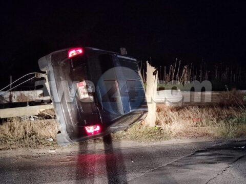 Chauffeur coriendo cu velocidad halto a perde control bolter bay dal riba palo di lus na Bushiri