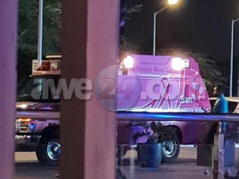 Polis y ambulans a bay na e Alhambra Food Court pa un turista cu a haya un “Heatstroke”