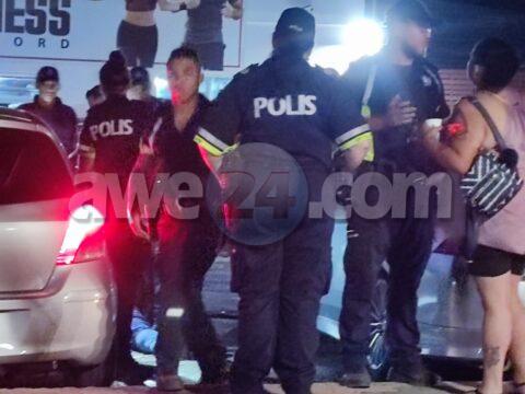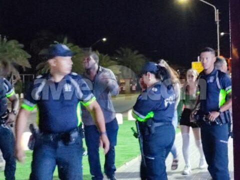 Polis a scual homber cu a busca problema bisando cu un grupo di dama a tira botter riba su cabez
