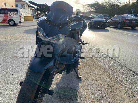 Motociclista herida den accidente unda auto a sali di dilanti bandi Cayena Mall.