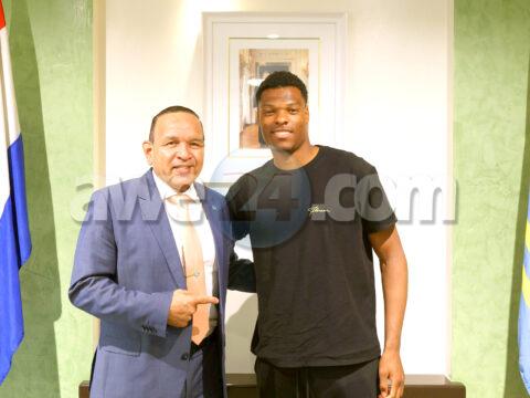 ORANJESTAD: Ayera tardi Minister Endy Croes a ricibi e astro internacional di futbol Denzel Dumfries cu a yega Aruba pa e…