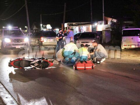 Accidente cu motociclista seriamente herida riba e caminda di Shiribana