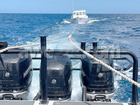 Polis Maritimo a bay yuda y rescata un boto den problema 4 miya zuid di Aruba.