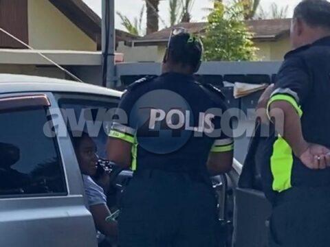 Diahuebs mainta polis a para un auto maneha pa un dama pa controla na Paraguana. Durante e control e dama…