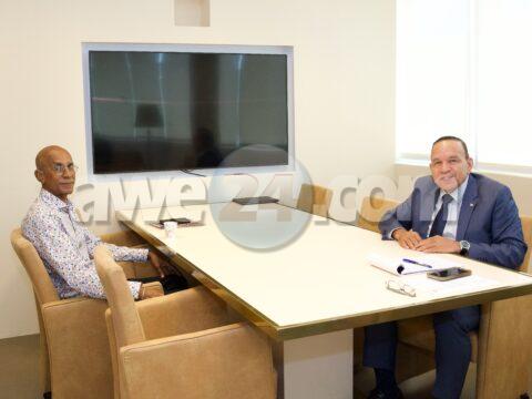 ORANJESTAD: Diaranson mainta Minister Endy Croes a ricibi bishita di cortesia di sr. Signald ‘Chai’ Currie kendetabata na Aruba di vacacion. Sr. Currie ta un…