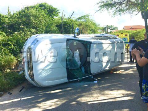 [VIDEO] Dama chauffeur burachi coriendo cu velocidad halto a perde control bay dal van di Jan Poets y cu DJ Edson Tromp aden na rotonde Mahuma