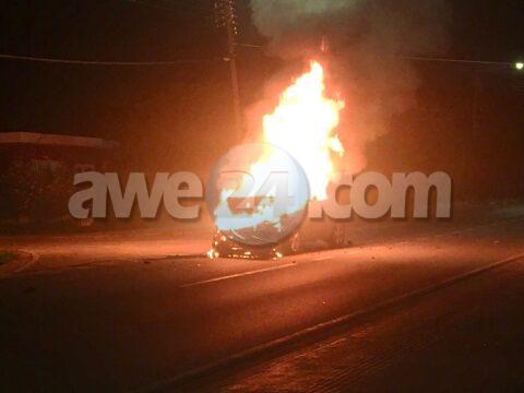 Diabierna madruga a drenta informe di un accidente cu hende herida y un di e autonan a pega na candela na Boegoeroei, mesora a dirigi…