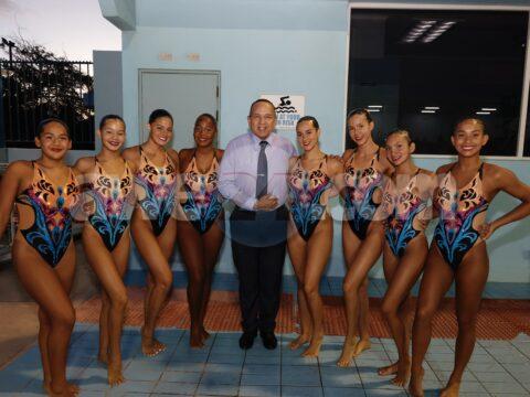 MINISTER ENDY CROES TA FELICITA BARRACUDAS ARTISTIC SWIMMING ARUBA CU NAN EXCELENTE PRESENTACION NA COMPETENCIA DI ARTISTIC SWIMMING CCCAN 2022.