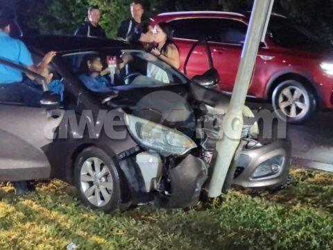 [VIDEO] Dama chauffeur a bira malo tras di stuur baha caminda y a bay dal riba un palo di lus