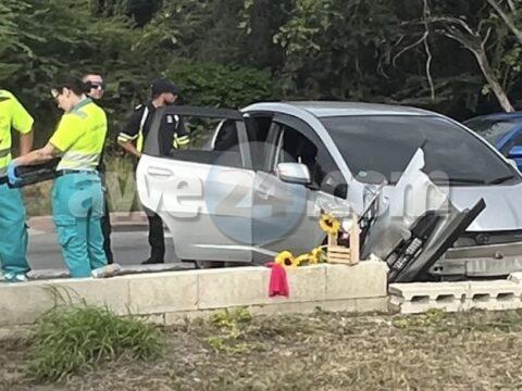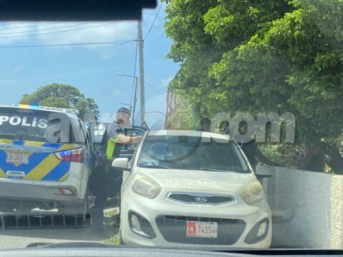 Baby a keda sera den auto den Avenida Milio Croes, polis y seguro a bini pa assisti.