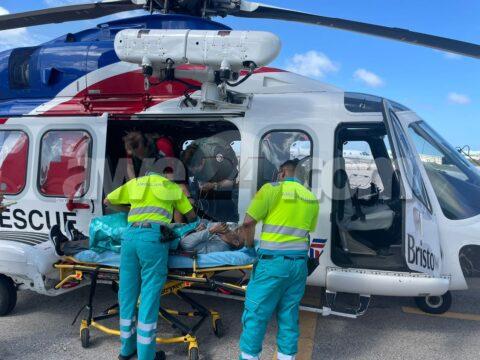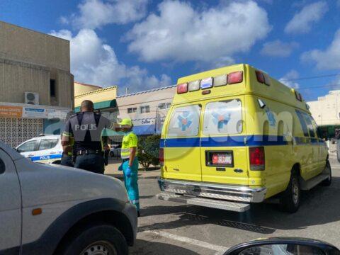 Polis y ambulans a bay asisti un dama cu a bira malo patras di Botica Oduber na playa.