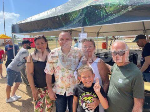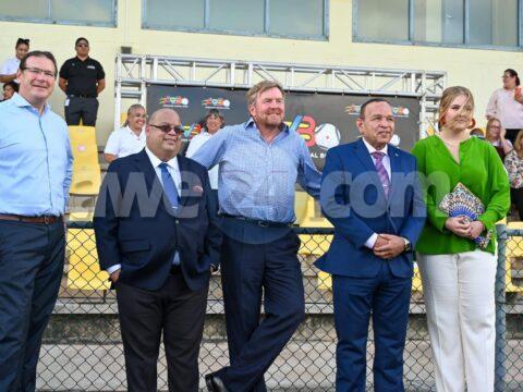 Minister di Deporte Endy Croes a presencia evento deportivo hunto cu Rey Willem-Alexander, Prinses Amalia y Gobernador di Aruba Alfonso Boekhoudt.