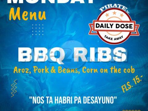 Wey Bon día Bo no tin gani cushina well Daily Dose take away tin BBQ RIBS AWE CU CORN Y PORK AND BEANS. Reserva dibo…