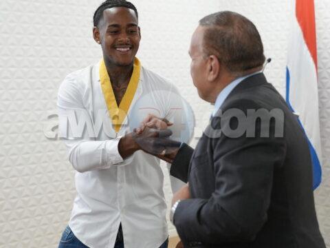 ORANJESTAD: Minister di Enseñansa y Deporte Endy Croes a ricibi bishita di campeon di kickboxing Clayton Raven. Clayton Raven a pone Aruba su nomber den…