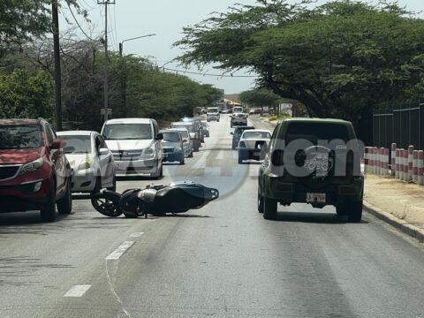 Motociclista a slip riba azeta plama riba caminda na Caya G.F. “Betico” Croes