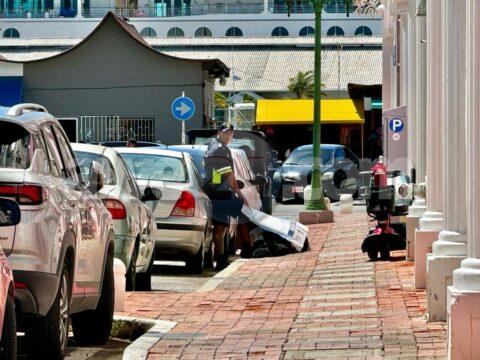 Diahuebs merdia T.O.P. (Tourism Oriented Police) a topa cu un turista cu lo a dal abao for di un seated scooter den Shellstraat y ta…
