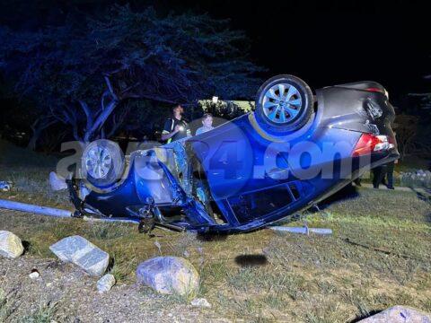 Saliendo for di rotonde Cumana chauffeur a perde control dal den banda kita nummerplaat y bay laga auto atras