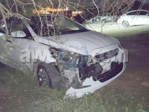 Dialuna madruga durante su patruya, polis atento a haya e auto cu lo tabata envolvi den e accidente di diadomingo madruga na Pos Abao. E…