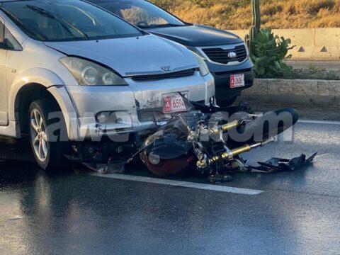 [VIDEO] Motociclista herida, auto a lastra e brommer cu e motociclista y nan a dal otro auto bir’e 90 grado