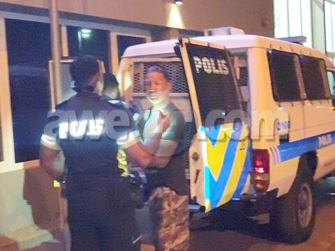 Diaranson anochi na un pompstation na Oranjestad polisnan atento a nota un homber actuando masha sospechoso y a acerke pa un control. Durante nan a…
