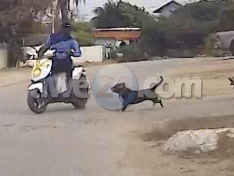 [VIDEO] Cacho riba caya a morde dama ciclista banda di Veld di Estrella