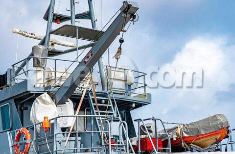 Riba e Cutter di guardacosta tin un grua monta cual ta hunga un rol importante na momento di hisa un di e 2 botonan a…