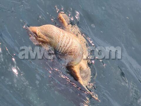 * E potret por ta grafico pa cierto persona* A tuma nota di un turtuga sumamente grandi (sin bida) ta drif riba awa den area…