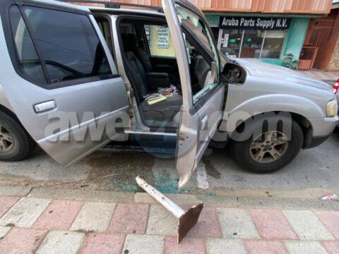 Ladron no por a kibra bentana cu piedra y a coy un tubo pa kibra e bentana pick-up