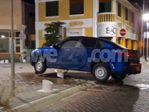 [VIDEO] Chauffeur a lepia y a bay subi auto riba pilon banda di ex-Breenchie’s y a keda pega!