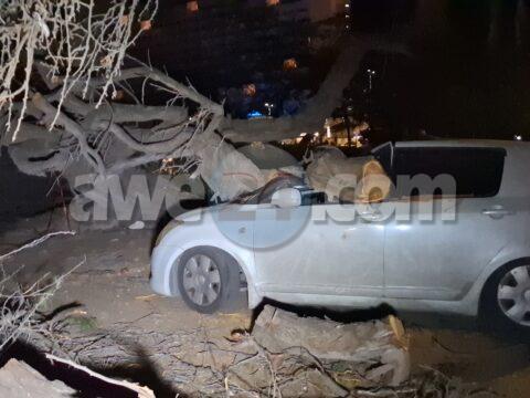 [VIDEO] Mientras trahado ta na trabao un mata grandi a cay riba su auto y destrui esaki