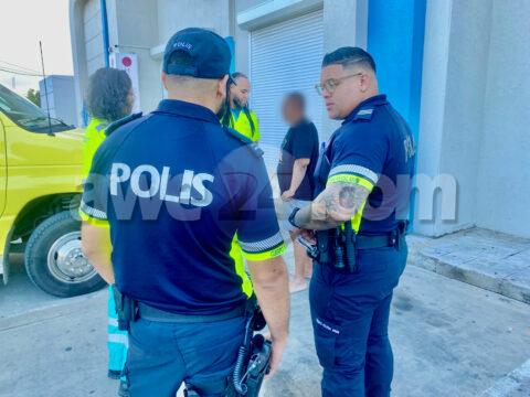 Polis y ambulans a bay Sabana Basora pa un persona cu un kap na cabes