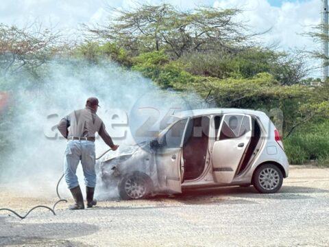 Auto a pega na candela riba caminda di Cumana, chauffeur di Apex a usa awa di su truck pa paga e candela