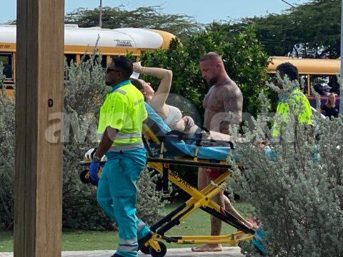 Ambulans y polis a bay pa un dama turista crucero cu lo a guli hopi awa, pero ta flauw ela cay