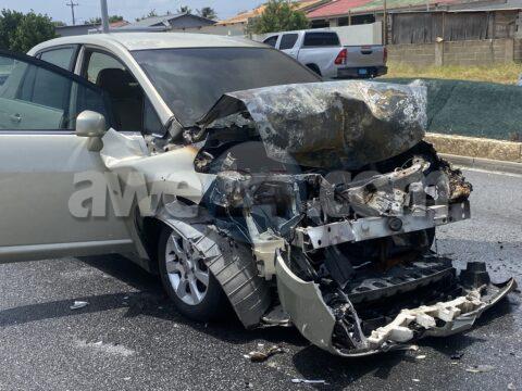 Chauffeur di un Nissan Tiida a bay dal basta fuerte tras di un pick-up y a pega na candela riba E.J.”Watty” Vos blvd.