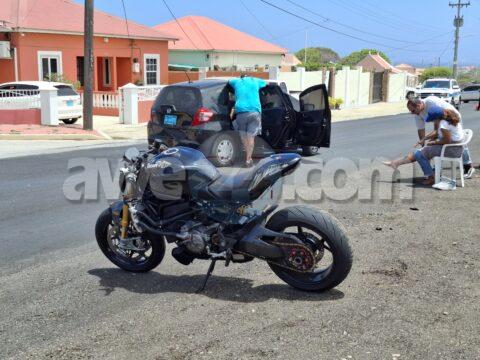 [VIDEO] Motorciclista a slip bai dal duro den un auto staciona na Pieter Boerstraat