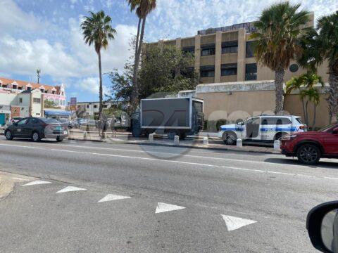 Dialuna mainta e polisnan banda di waf a para e chauffeur di un truck dilanti di e ex-edificio di aduana pa un control y hala…