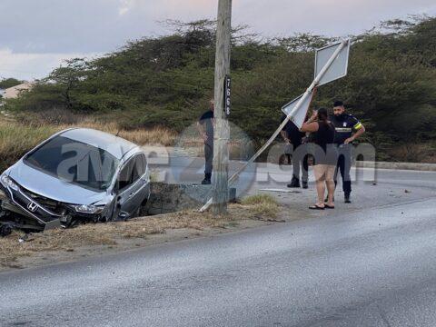Chauffeur ta perde control bay cay den e rooi panort di brandweer na Tanki Flip y ta bandona e sitio