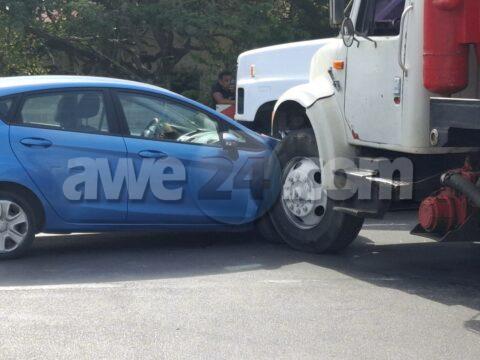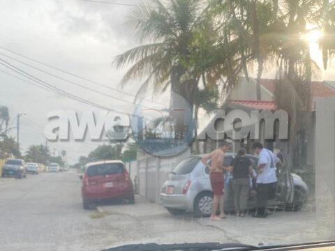 Diabierna atardi a drenta informe di un accidente banda di Sun plaza unda un auto Hyundai Elantra a bay dal riba un Jeep na banda…