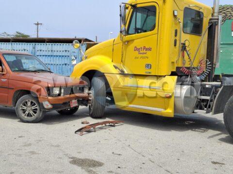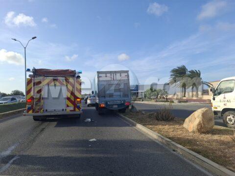 Accidente ora truck di bombero bayendo cu emergencia pa un candela mester a pasa memey di un truck cu un auto