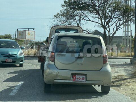 Chauffeur di un Toyota Passo no a regula su velocidad ni a mantene distancia a bay dal tras di un pick-up truck