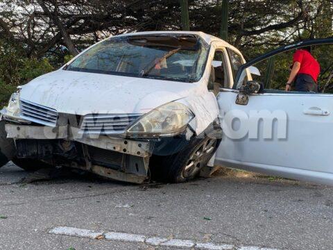 Accidente cu un auto sin papelnan na ordo na Pos Abao.