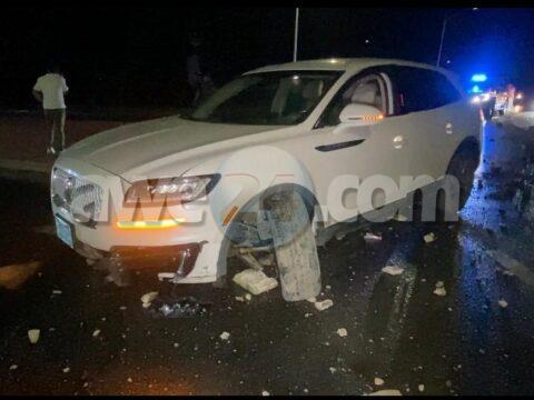 [VIDEO] Chauffeur no a logra brake na tempo y a slip bay dal na e rand di muraya riba rotonde Palm Beach