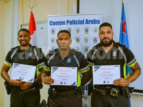 MACUARIMA, ARUBA: Fin di luna di februari 2025, altocomisario Arnhem a yama tres colega policial pa presenta na Warda di Polis Santa Cruz pa honranan…