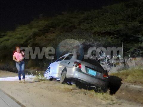 Dama Chauffeur a baha caminda pega den greppel riba caminda pa Hato