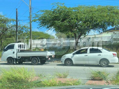 Chauffeur di un Toyota Yaris no a regula su velocidad ni a mantene distancia a bay dal tras di un pick-up na Paradera